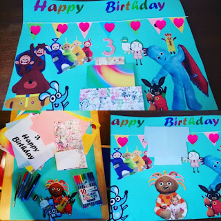 Since we were not going to be home all day, we set the set-top box to record the shows at the prescribed times on the website. It caught the bits in between shows and we watched it back. I was so excited when I saw my card but Bug wasn't as impressed as I was and talked through it each time I played it back.